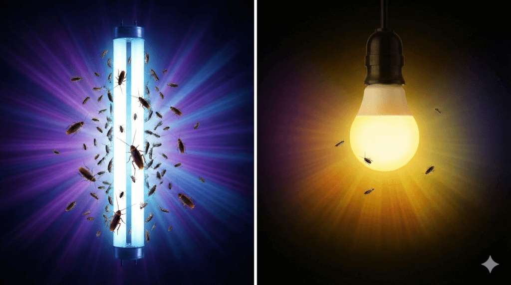 ゴキブリLED対策としてよく語られるのが「LEDは虫が寄りにくい」という話です。これは概ね正しく、一般的な白色LEDは紫外線側の放出が少ない構造のものが多いため、蛍光灯より誘引が下がりやすい傾向があります。とはいえ、ここで大事なのは“寄りにくい”であって“寄らない”ではないという線引きです。