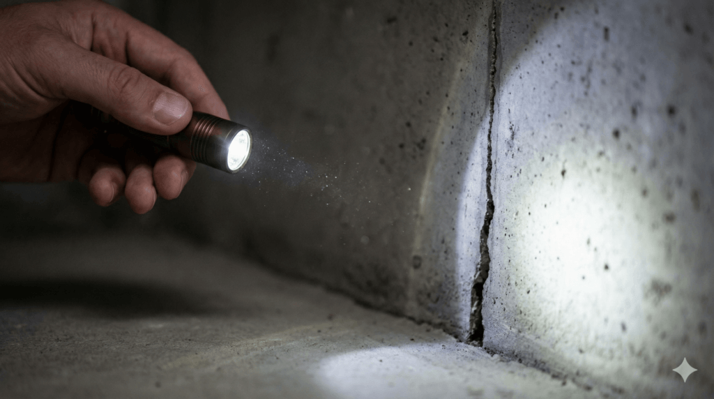 室内機周りで「小さな黒い粒(フンのようなもの)」が落ちている、夜にカサカサ音がする、エアコン周りでゴキブリを見かけたことがある。こうしたサインがあるなら、ドレンホースだけでなく、配管の貫通部(パテ)の劣化も同時に疑ってください。パテの隙間は見えにくいので、スマホライトを横から当てると凹凸が分かりやすいです。