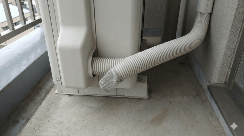 私が強く言いたいのは、「虫を止めるために、水を止めない」ことです。キャップやネットは便利ですが、埃や藻が溜まると排水が悪くなり、水漏れの原因になります。だから、取り付けたら終わりではなく、季節の切り替わり(冷房開始前・終了後)で点検するのが現実的です。ドレンホースの先端が地面に埋もれていたり、植木鉢の影に入り込んでいたりすると湿気が溜まりやすいので、先端が風通しのいい位置にあるかも確認してください。