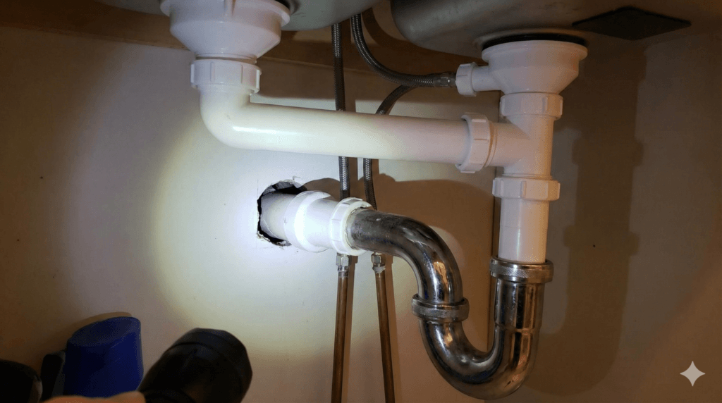 マンションの“見えない高速道路”になりやすいのが、排水溝・排水管・配管スペースです。縦に貫通する配管の周りは暗く、湿気が残りやすく、人の目も届きにくい。ゴキブリが移動する条件がそろっています。ここが原因のときは、表で見える廊下を掃除しても、裏側でまた出てきます。つまり、“出たところ”ではなく“通ってるところ”を止めるのがコツです。