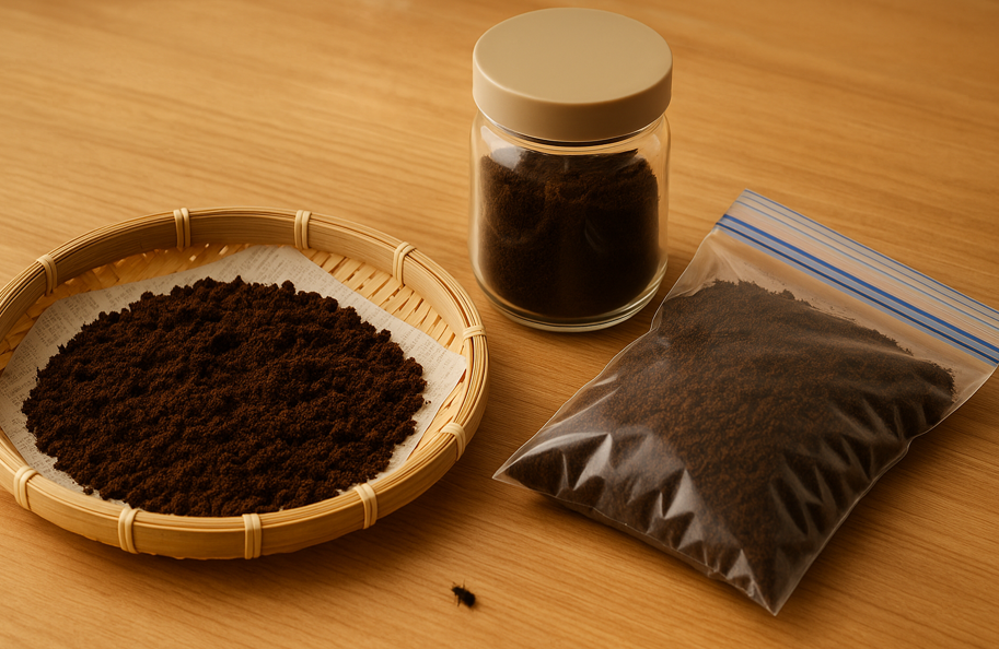 - コーヒーかすは乾燥管理を徹底し湿りを残さない