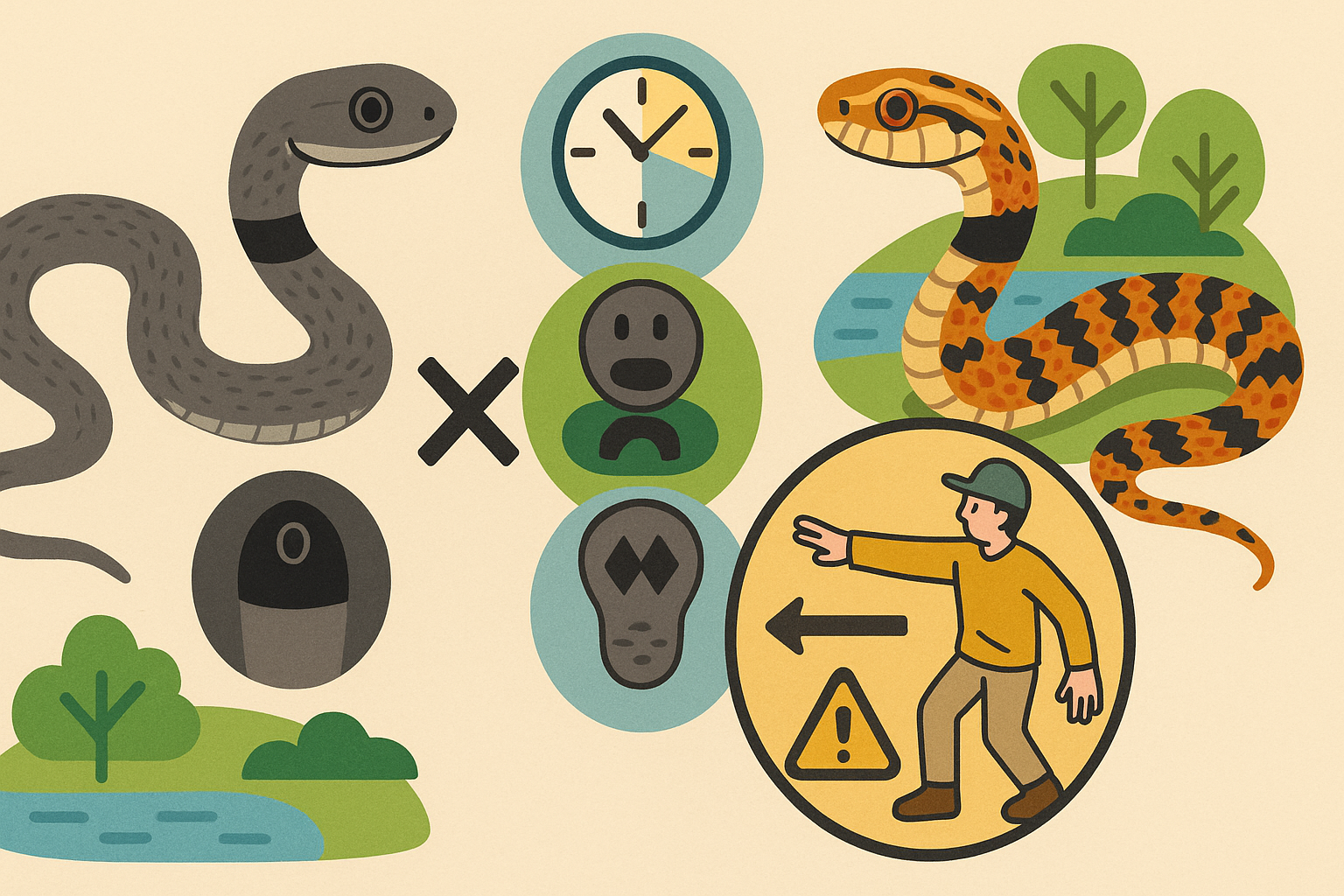 ここでのポイントは、「ヒバカリ=身近でおとなしい無毒ヘビ」「ヤマカガシ=見かけによらず重篤な症状を起こすことのある毒ヘビ」という大枠を頭に入れつつも、色や模様だけで早合点しないことです。私は現場でヘビを観察するとき、「種類を当てる」よりも先に、「人の安全に直結する特徴は何か」を確認するようにしています。読者の皆さんにも、その視点で読み進めてもらえると理解がぐっと深まります。