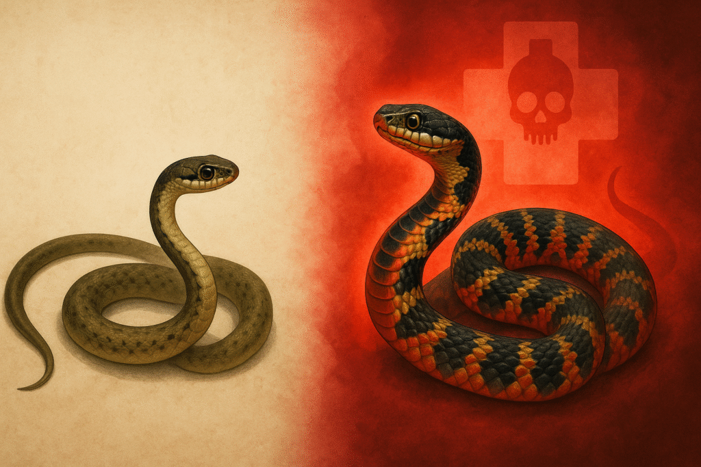 要点:「ヒバカリは無毒・ヤマカガシは猛毒」という毒性の違いこそが、両者の最も重要な違いです。毒の有無だけでなく、「後から効いてくるタイプの毒」であることを理解しておくと、咬まれたときに「今は軽いから大丈夫」と自己判断する危険を避けやすくなります。