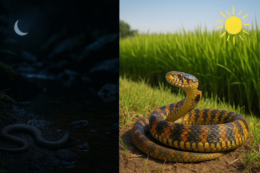 ヒバカリとヤマカガシの違い:生息環境と活動時間の比較