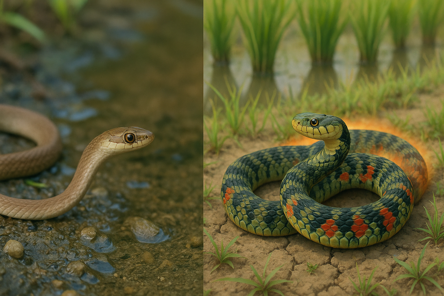 まずは、ヒバカリとヤマカガシの違いを大づかみに整理しておきましょう。両方とも日本の水田や河川、湿地などでよく見られるヘビですが、毒性や性格、活動時間、そして首の模様には決定的な差があります。この章では、「どんなヘビなのか」「どこが決定的に違うのか」を押さえ、後の見分け方や安全対策の前提となる基礎知識を固めていきます。