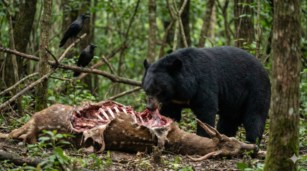 クマのスカベンジング行動は、シカやイノシシの死骸、人間が捨ててしまった生ゴミなどにも向かいます。