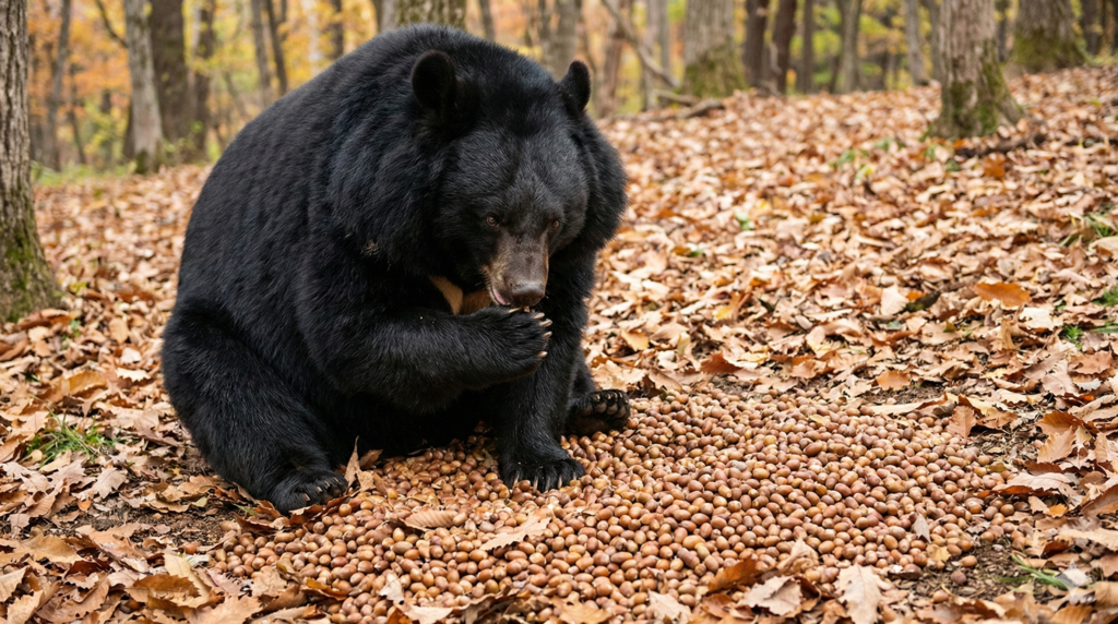 特に秋のツキノワグマにとって、ドングリは単なる好物ではなく、冬を乗り切るための「命綱」と言っていいほど重要な資源です。