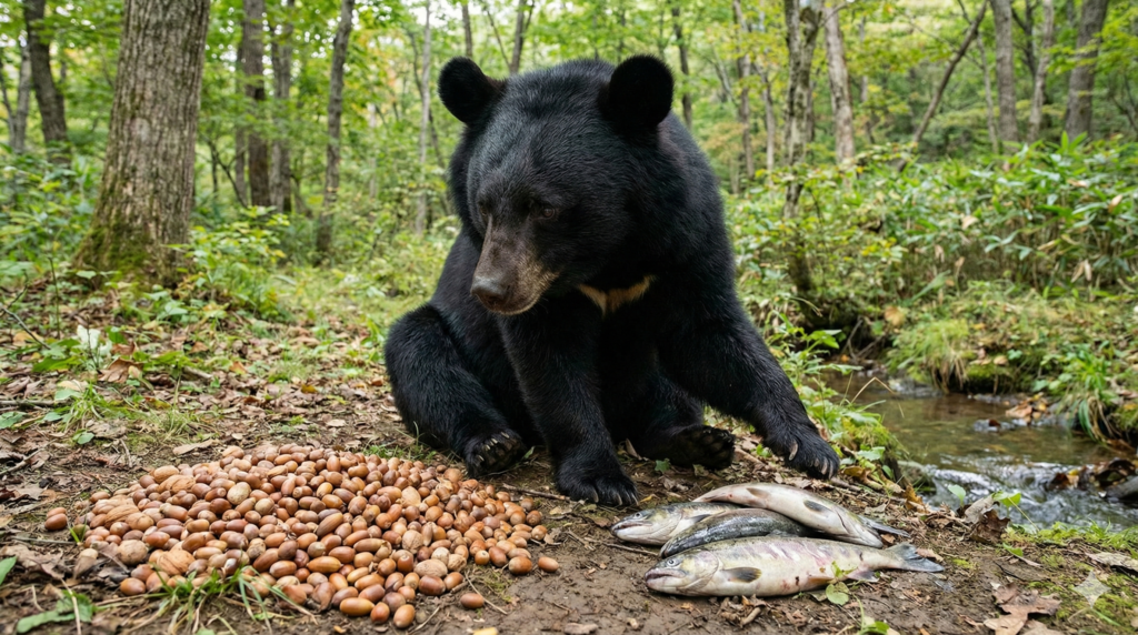 結論を一言でまとめると、「文化的なイメージとしてはツキノワグマは鮭ではなく、実際の生態としても主食はドングリや木の実。ただし条件がそろえば鮭を食べることもある」というバランスが最も現実に近いと考えています。