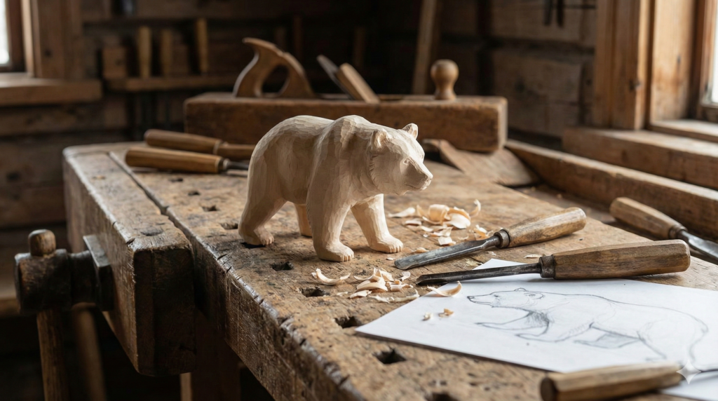 海の幸と川の鮭、そして森のヒグマという象徴が、一つの木彫り作品の中に凝縮されていきました。