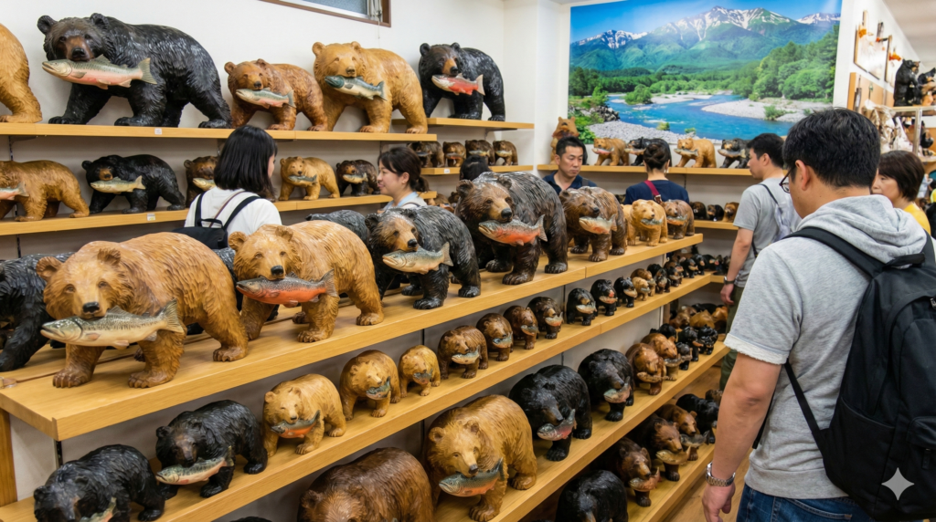 鮭をくわえる木彫り熊がここまで定着した背景には、観光文化ならではの事情があります。
