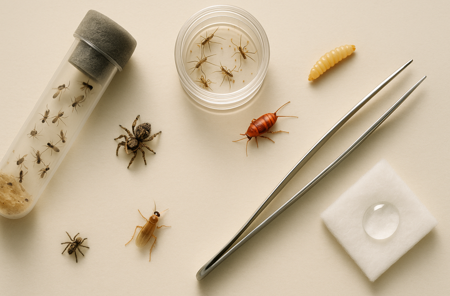 | コオロギ極小幼体(ピンヘッド) | 腹幅の0.5〜0.8倍 | 入手が容易で嗜好性が高い | 噛傷リスクあり。食べ残しは即回収 | 幼体は隔日、成体は3〜7日に1回 |