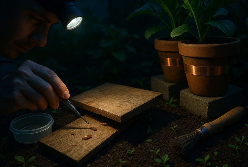 誘因トラップを併用するなら、集まりやすい板片を置いて日中に裏返して回収する方法は再現性が高い手段です。