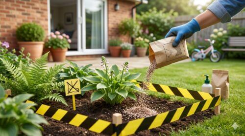 散布した当日は、いかなる理由があっても子供やペットを庭に出すべきではありません。特に液剤の場合は、葉が完全に乾くまでは薬剤が衣服や皮膚に付着しやすいためです。粒剤の場合も、散布後に水やりをして土の中に成分を馴染ませるまでは、粒が露出した状態が続くため危険です。最低でも24時間、できれば数日間は、薬剤を撒いたエリアへの立ち入りを制限するのが理想的です。