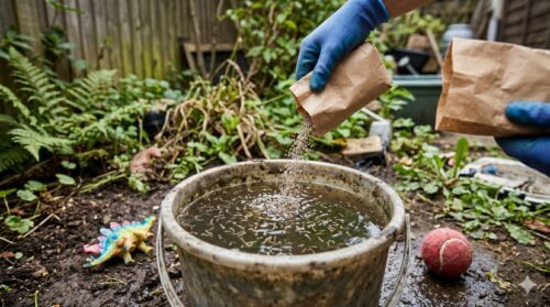 庭を点検してみてください。植木鉢の受け皿に水が溜まっていませんか? 放置されたバケツ、空き缶、古タイヤ、さらにはビニールシートのたわみ。こうした「人工的な容器」は、蚊にとって天敵のいない絶好の産卵場所です。週に一度、庭を一周してこれらの水を捨てるだけで、庭の蚊の数は激減します。もし水を捨てられない場合は、土や砂で埋めてしまうのも一つの手です。