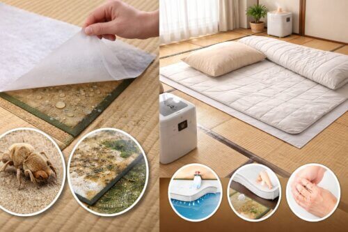 万能ではありません。100均やダイソーの製品は短期補助には向く一方、広い面積や長期管理には限界があります。防ダニだけでなく、防湿、防カビ、サイズ、交換目安、使用場所を見て選ぶことが大切です。さらに、畳の上に使うのか、畳の下に施工するのかで、役割そのものが変わります。目的に合っていない製品を選ぶと、十分な効果を実感しにくくなります。
