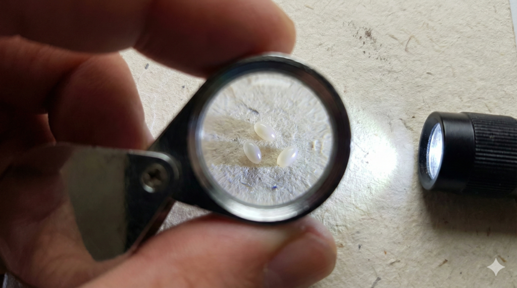 「卵っぽいものがある気がする」「畳に白い粒があるけど、これが卵なのか?」という場面で、肉眼勝負はおすすめしません。
