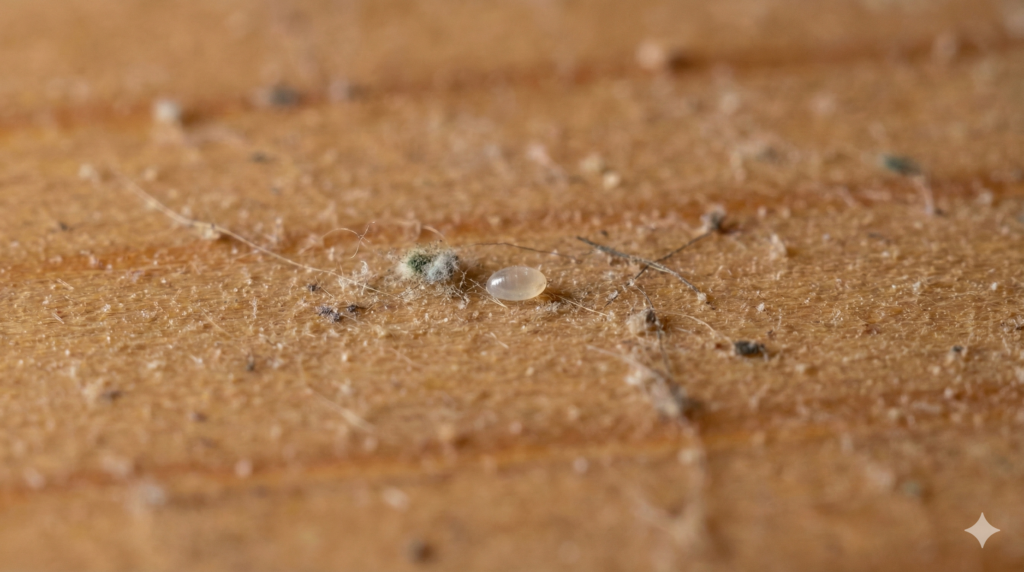 また、卵は基材に貼り付くように産み付けられることがあり、掃除機で簡単に吸い取れない場合があります。