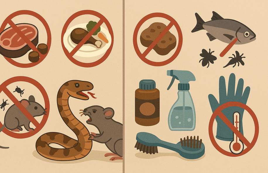 そのうえで、ヘビの種類によって食べるものがどのように異なるのかをわかりやすく整理し、飼育環境下で与える主な餌の種類や扱い方、注意すべき衛生管理のポイントにも触れます。