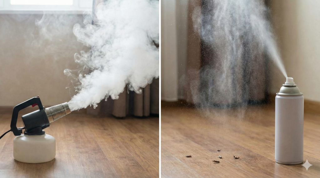 ただ、チャタテムシは床面・畳・隙間など低い位置に多く、床へ落ちて届く設計の霧タイプの方が相性がいい場面が多いです。