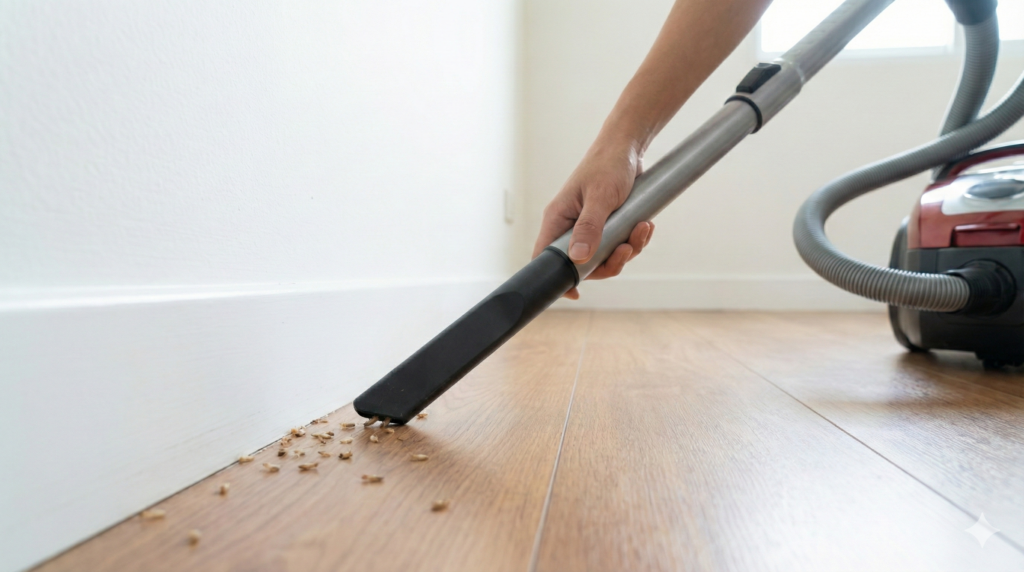 霧タイプを使っただけで終わりにすると、床に落ちた死骸やホコリが残り、気持ち悪さが長引くし、再発の土台(ホコリ・微粉)が残りやすいです。