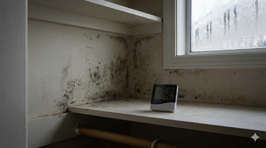 新築やきれいな家でも、押し入れの奥・壁際の家具裏・窓際の結露など、湿気が残る“点”があれば成立します。
