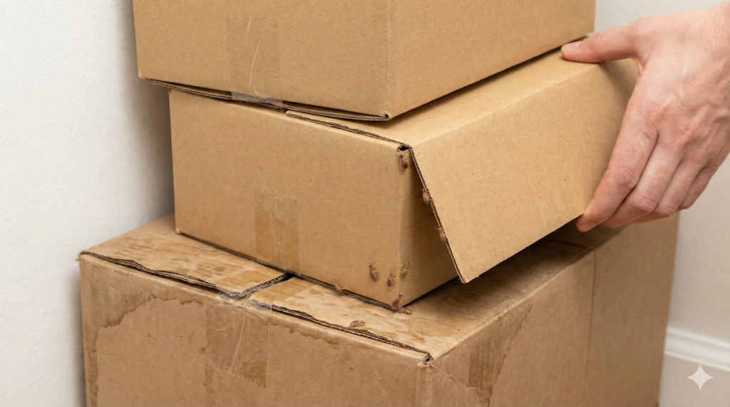 そこにホコリが溜まり、湿度が上がり、微細なカビが成立する。すると、段ボール自体が“餌場と繁殖場”になります。