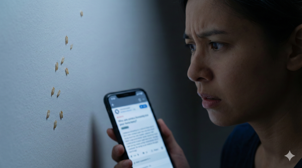 たまたま壁を歩く小さな影を見た、畳の目で動く粒が目に入った。ところが一度認識すると、次からは視界の端のホコリ、床の小さなゴミ、壁紙の模様の陰影まで「虫では?」に見えてくる。こうなると、駆除そのものより精神的な消耗が先に来ます。