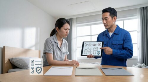 | 施工範囲 | 寝具周辺だけか、家全体か | 原因が複数箇所にあると部分施工では再発しやすいため |
