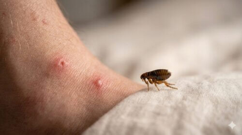 毎日刺されると聞くと、多くの方は真っ先にダニを思い浮かべます。ですが、現場での相談では、実はノミだったというケースも少なくありません。ノミは床付近で活動し、人やペットに飛びついて吸血するため、足首、すね、足の甲など下半身に被害が集中しやすいのが特徴です。もちろん絶対ではありませんが、布団に入ったときだけではなく、ソファに座っているときや床に近い場所で過ごしたあとにかゆくなるなら、ノミも疑ってください。