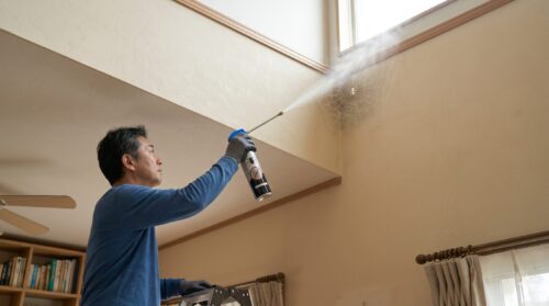ただし、天井に使用する際は、液だれや霧の吸い込みに十分注意してください。噴射口を自分に向けないことはもちろん、保護メガネやマスクを着用し、作業後は部屋の換気を徹底しましょう。また、一部の壁紙素材では変色する恐れがあるため、必ず目立たない場所でテストしてから使用を開始してください。予防こそが、最大の防御なのです。