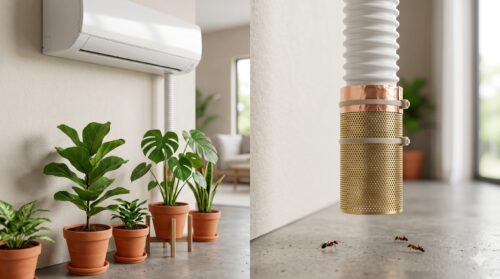 「マンションの10階ならアリは上がってこない」というのは、アリの移動能力を過小評価した誤解です。多くのアリは外壁の微細な凹凸を掴んで垂直に登ることが可能で、エサの匂いさえあれば高層階であっても果敢に進出してきます。その際に最も利用されやすい「橋渡し役」が、エアコンのドレンホース(排水ホース)や、壁を伝う室外機の配線、配管カバーです。