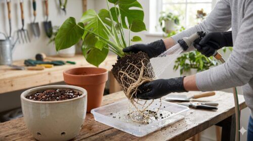 作業のポイントは、古い土を徹底的に取り除くことです。鉢から抜いた株の根を優しくほぐし、バケツに溜めた水の中で丁寧に洗います。この際、根の隙間に挟まったアリや卵を完全に洗い流してください。同時に、根に寄生しているカイガラムシなどがいないかもチェックし、見つけ次第ブラシなどで落とします。
