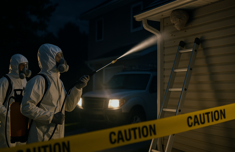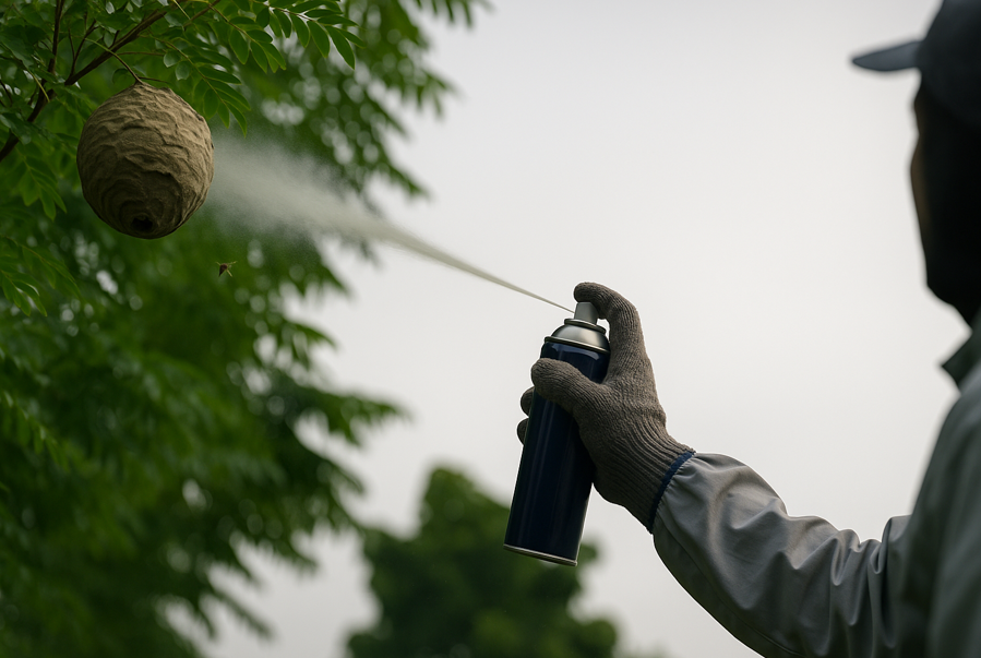 自分でスプレーを使ったとしても、完全に巣の内部まで効果が届かないことがあります。特に夜間や雨天など作業が難しい環境下では、判断を誤ると非常に危険です。