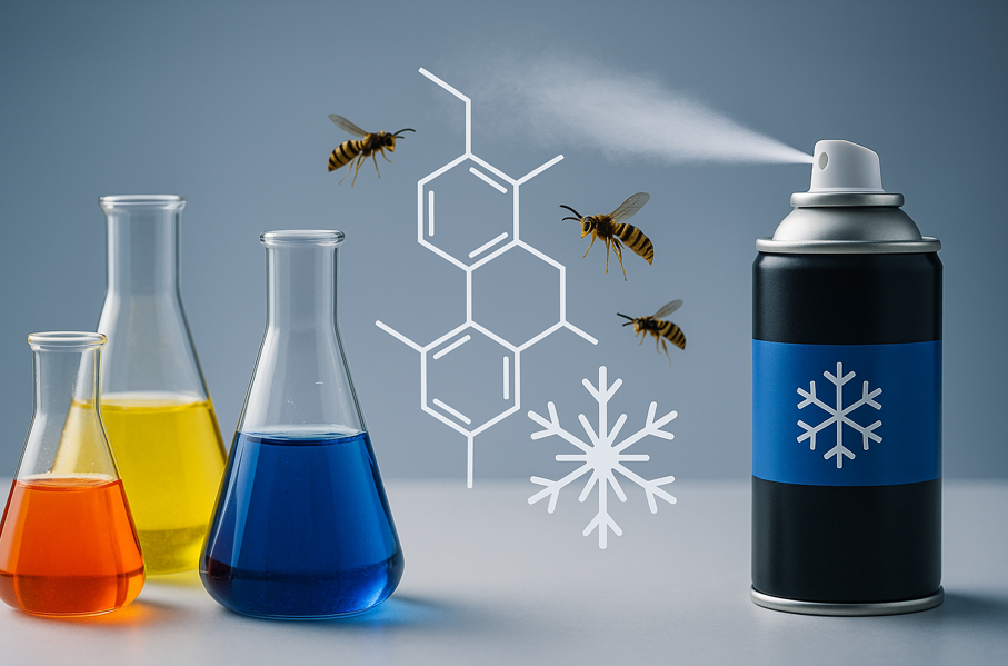 ハチ駆除に使用される薬剤は、単に虫を殺すだけではなく、飛行能力を制限したり、神経系を麻痺させて即座に動けなくさせることが求められます。そこで使用される主な成分は、「d-T80-フタルスリン」や「トラロメトリン」といったピレスロイド系化合物です。