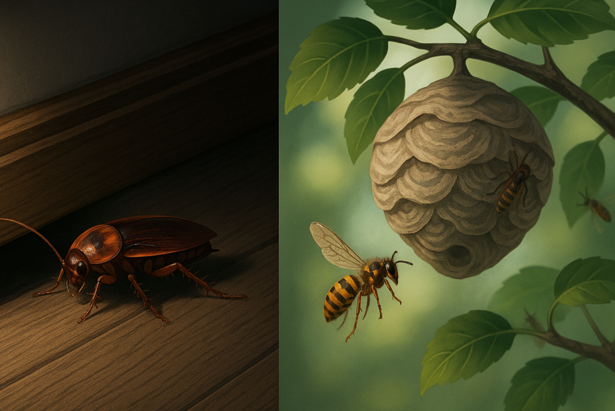 まず生態の面で言えば、ゴキブリは暗く湿った場所を好み、単独で行動することが多い徘徊性の害虫です。一方でハチは、巣を作って集団で行動し、外敵に対して攻撃性を示すという特徴があります。特に巣に近づいた場合、防衛本能から複数の個体が一斉に襲ってくることもあるため、安易に近づくのは非常に危険です。