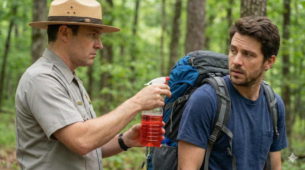 職務質問や検問などで、ペットボトルや手作り容器に入った刺激物スプレーが見つかった場合、たとえ本人が「熊対策のつもりだった」と説明しても、それがそのまま受け入れられる保証はありません。