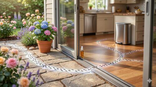 室内侵入を防ぐフェロモンリセット術 ・アリの通り道を見つけたら、洗剤を含ませた雑巾で広めに拭き取る ・侵入口(サッシの隙間など)を特定し、シリコンシーラントや隙間テープで塞ぐ ・フェロモンを上書きするハッカ油スプレーを散布する