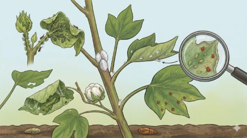 綿花の害虫は、見た目が小さくても被害は決して小さくありません。吸汁性害虫は植物の栄養を奪うだけでなく、甘露による汚れやすす病の誘発につながりますし、食害性害虫は光合成面積を減らして株の勢いを落とします。さらに、ボウル内部への加害は収量だけでなく繊維品質にも響きます。だからこそ私は、害虫対策の出発点を「何を使って駆除するか」ではなく、「今どんな被害が起きているかを見極めること」に置いています。