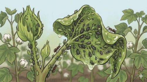 綿花の害虫は、単に葉を傷めるだけではありません。アブラムシやコナカイガラムシの甘露が繊維に付くと、ベタつきや汚れの原因になりますし、すす病が出れば見た目も商品性も落ちます。ボウルを加害する害虫では、未熟な繊維や変色、開綿不良につながることがあります。