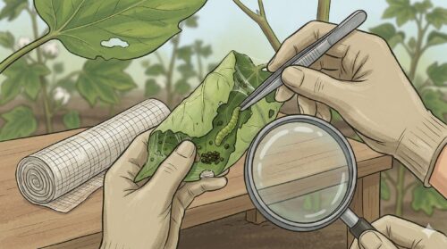 さらに、近くに同じようなチョウ目害虫が出やすい植物がある場合は、綿花だけでなく周辺環境も見直したいところです。夜間に活動しやすい幼虫もいるため、昼だけでなく朝夕の観察も役立ちます。葉巻きは見た目に特徴があるぶん、症状を知っていれば早めに止めやすい害虫でもあります。