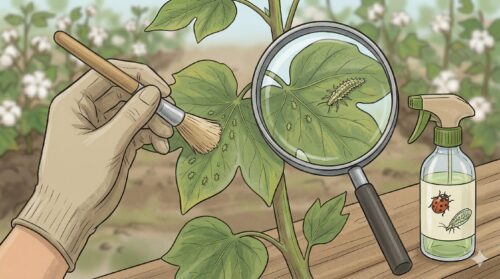 近隣の植生も無視できません。綿花の周囲に似た害虫が発生しやすい植物があると、綿花だけを丁寧に管理しても被害が続くことがあります。だから私は、綿花の鉢や畝だけでなく、近くの雑草や他の作物も軽く見回すようにしています。これだけでも発生源を早くつかめることがあります。