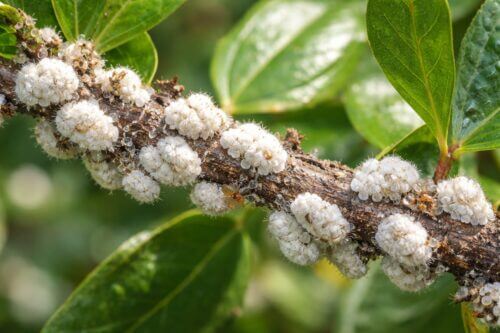 カイガラムシは枝の白い塊に注意