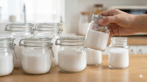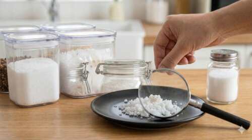 また、使用頻度が高い塩とストック用の塩を分ける考え方も実用的です。日常使いは小さめ容器に入れて手元に置き、未使用分や大袋の本体は別の密閉容器に入れて冷暗所に置くと、開閉回数が減り、湿気の侵入も抑えやすくなります。私はこの「使う分だけ前線に出す」管理をおすすめしています。ひとつの容器に全量を入れて毎回開け閉めするより、衛生面でも扱いやすさでも有利です。