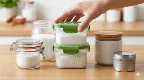 塩のダニ対策で最も重要なのは、保存容器の密閉性です。見た目がおしゃれでも、フタが甘い容器では湿気の出入りを止めきれませんし、容器口に微粒子が付着しやすい構造だと、開閉のたびに衛生状態が崩れやすくなります。私ならまず、パッキン付きでしっかり閉まり、片手でも扱いやすく、口元を拭きやすい形状の容器を選びます。