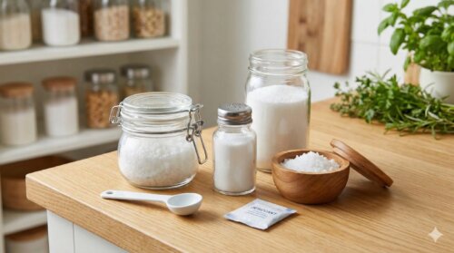 キッチンでは、塩だけを単独で扱う場面は意外と少ないものです。だし、砂糖、片栗粉、小麦粉、調味塩、スパイス、乾物などが近くに置かれ、それぞれが少しずつ飛び散ります。これらが塩の保存棚に積み重なることで、塩の「わきにくさ」が打ち消されることがあります。だからこそ、塩を守るには塩単体ではなく、保管環境の総点検が必要です。