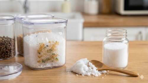 つまり、塩を守るには、塩だけでなくキッチン全体の湿気管理が必要ということです。食品棚の詰め込みすぎや、使いかけ袋の放置、容器のフタまわりの汚れを放置していないか、今一度見直してみてください。