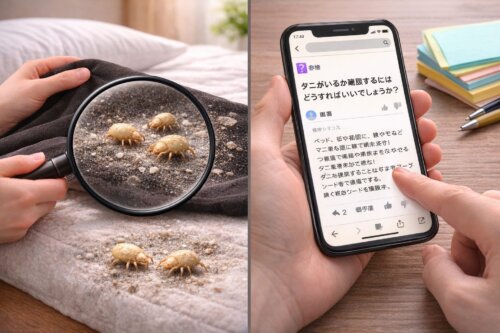 この記事では、家の中にダニがいるかを判断するための現実的な確認手順を、Yahoo!知恵袋でよく見られる悩み方にも触れながら、できるだけわかりやすく整理します。読後には、まず何を見て、何を除外し、どの対策から始めるべきかが整理しやすくなります。