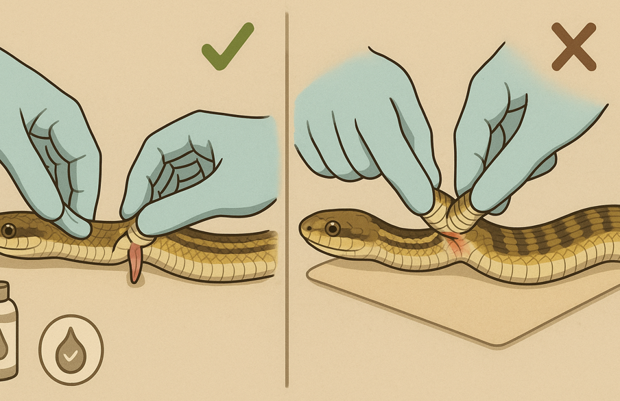 未経験者の自己流は厳禁で、獣医師や熟練の爬虫類専門家に依頼してください。