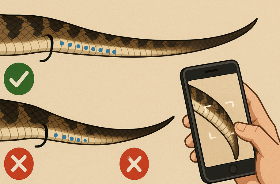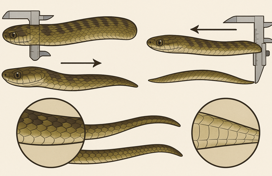 尾の腹側を覆う尾下板(Subcaudal Scales)の枚数は、尾長の客観的な代理指標で、外見の主観を補正できます。