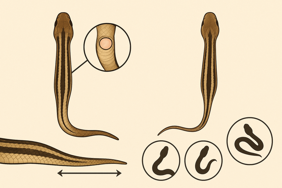 幼蛇は二次性徴が弱く、尾の膨らみもわずかで、外見差は成体ほど明確ではありません。